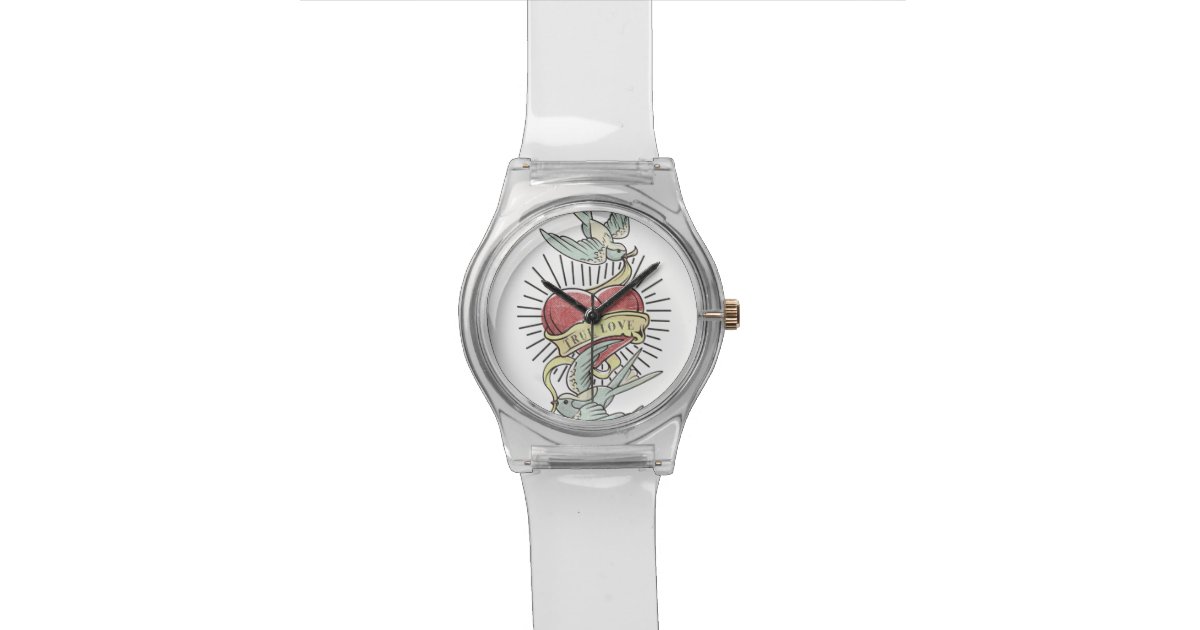 True Love Vintage Tattoo Birds With Heart Watch Zazzle